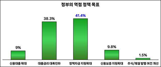 이어 신용보증 지원 확대(9.8%), 신용대출 확대(9%), 자본시장 발행 여건 개선(1.5%) 순이었다.