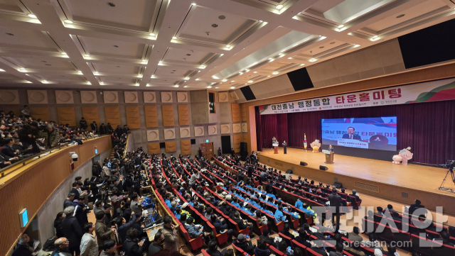 대전·충남 행정통합을 둘러싼 찬반 논란이 고조되는 가운데 6일 대전시청 대강당에서 열린 타운홀미팅에는 시민들이 대거 몰려 높은 관심을 보였다.