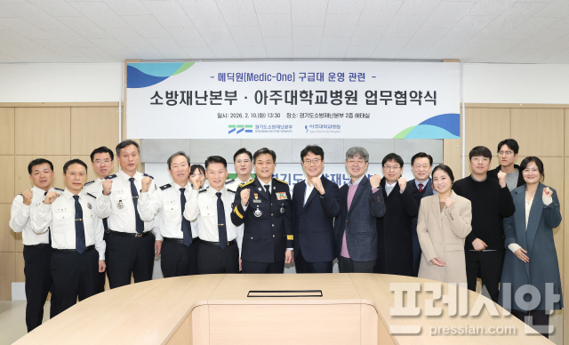 경기도소방재난본부는 10일 아주대학교병원과 ‘응급의료 원팀(One-Team) 체계’ 구축을 위한 MOU를 체결했다.