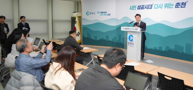 ▲브리핑하는 육동한 춘천시장. ⓒ춘천시