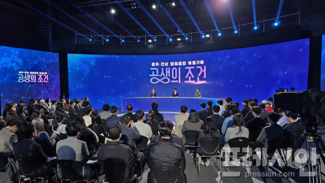 KBS광주방송총국은 13일 김영록 전남지사와 강기정 광주시장, 2040청년 패널 100명, 동부권 시장·군수 등이 참석한 가운데 '전남·광주 행정통합 특별기획 공생의 조건' 타운홀 미팅을 주관했다.