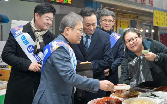 강원도지사 출마를 준비하고 있는 우상호 전 청와대 정무수석이 설 명절을 앞두고 원주지역 전통시장을 찾아 바닥 민심 훑기에 나섰다.