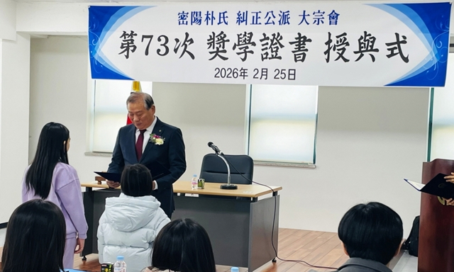 밀양박씨 규정공파 대종회가 고양시 덕양구 주교동에 장학금 1440만원을 25일 기부했다.