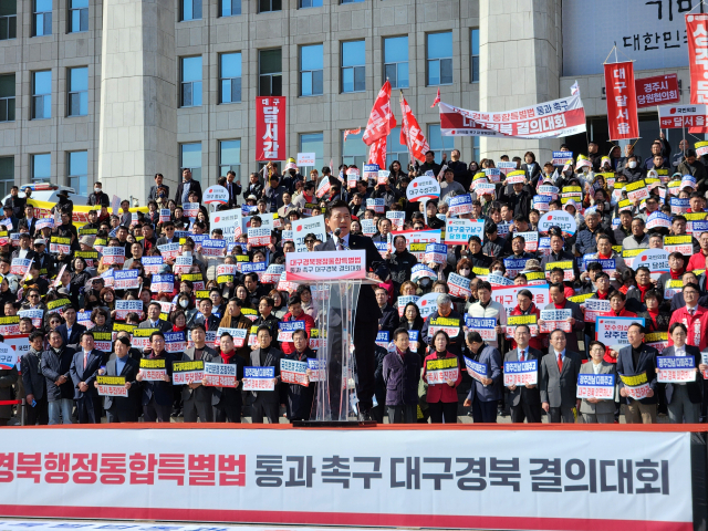 이날 결의대회는 수도권 집중화 심화와 지역 소멸 위기 속에서 대구경북의 경쟁력을 획기적으로 강화하고, 국가 균형 발전의 새로운 전기를 마련하기 위해 행정통합특별법의 신속한 입법처리가 반드시 필요하다는 지역민들의 염원을 담았다고 전했다.