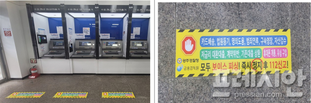 광주경찰청은 금융감독원 광주전남지원과 손잡고 최근 관내 금융기관 567개소의 ATM 앞 바닥에 '보이스피싱 정지선'을 부착했다고 9일 밝혔다.