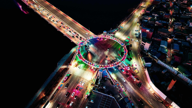 소양아트서클은 호반사거리에 조성된 원형 구조의 보행 시설로 단순히 건너가는 육교를 넘어 걷는 순간 완성되는 공공예술이자 도심 체험 공간으로 기획됐다.