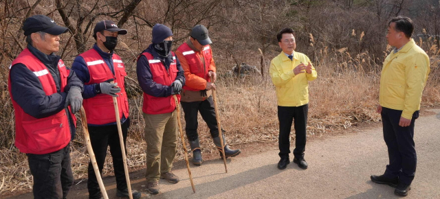 육동한 춘천시장은 이날 서면 덕두원리 일대를 방문해 환경부 수색팀의 멧돼지 폐사체 수색 활동 현장을 확인하고 수색 인력을 격려했다.