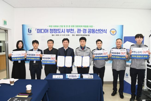 경기 부천시와 부천원미경찰서는 지난 11일 중앙지구대에서 ‘미디어 청정도시 부천’ 관·경 공동 선언식을 열고 공공장소 촬영 질서 확립을 위한 협력 대응을 강화하기로 했다.