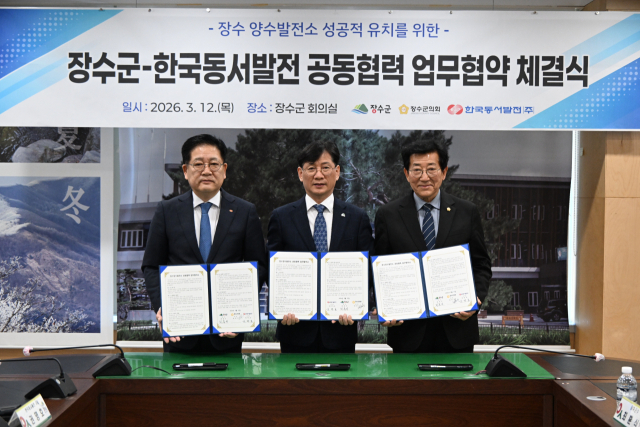 협약식에는 최훈식 장수군수와 최한주 군의회 의장을 비롯해 권명호 한국동서발전 사장 등 기관 관계자 20여 명이 참석했다.