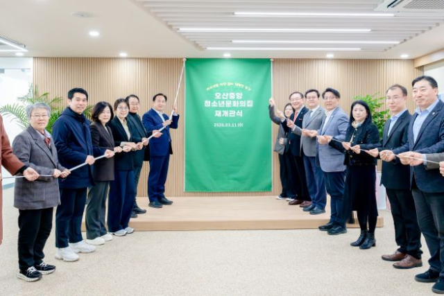 16일 오산시에 따르면 지난 11일 열린 오산중앙청소년문화의집 재개관식에는 이권재 시장 등 시 관계자와 수탁법인 관계자, 지역 청소년과 시민들이 참석해 새 단장한 시설을 둘러보고 축하했다.