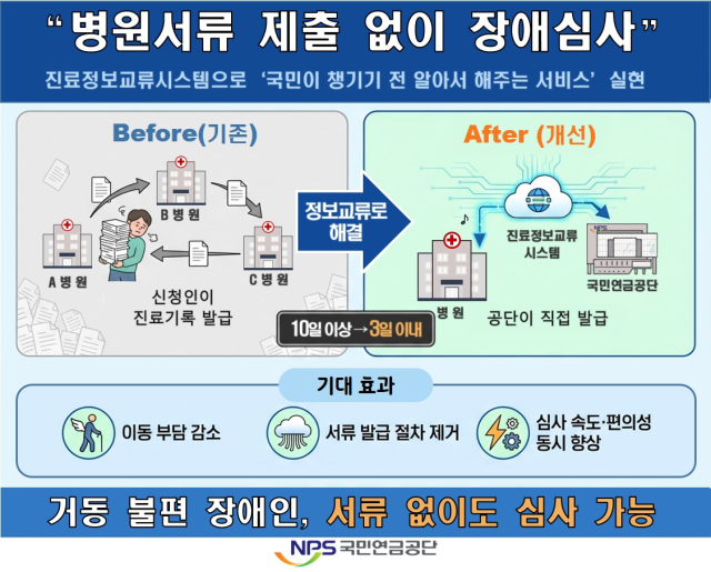 국민연금공단(이사장 김성주)이 김 씨의 동의를 얻어 '진료정보교류시스템'을 이용해서 병원에서 직접 필요한 자료를 전송받아 심사를 진행했기 때문이다.