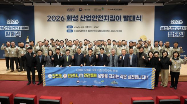 화성시는 18일 화성동탄2 인큐베이팅센터에서 ‘2026년 화성 산업안전지킴이 발대식’을 개최했다. 이 행사에는 윤성진 제1부시장을 비롯해 김도형 경기지방고용노동청장, 전병선 화성산업진흥원장, 산업안전지킴이 등 약 150명이 참석했다.