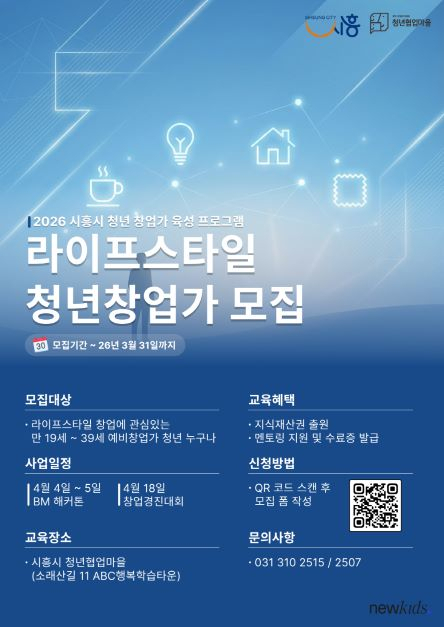 경기 시흥시는 ‘2026 청년 창업가 육성 프로그램’의 일환으로 라이프스타일 분야 예비 청년창업가를 대상으로 ‘창업 해커톤’과 ‘창업 경진대회’를 열기로 하고, 오는 31일까지 참가자 30명을 모집한다.