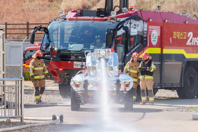 이날 훈련에는 현대차 그룹으로부터 전달받은 무인소방로봇 ‘HR-쉐르파’를 훈련에 투입하여 사람이 접근하기 어렵고 위험한 지점에서의 화재진압 능력을 점검했다.