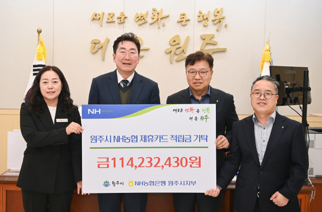 원주시는 지난 24일 시청에서 원강수 시장, 김주석 NH농협 원주시지부장 등이 참석한 가운데 NH농협 제휴카드 적립금 전달식을 가졌다.