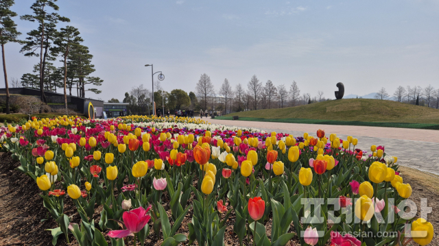 노을정원으로 가는 길엔 수를 헤아릴 수 없는 튤립이 식재돼 4월 초 개화를 앞두고 있고, 중국 정원을 지나 네덜란드 정원으로 향하는 동천변에는 연분홍 벚꽃이 피어나 환상적인 광경을 연출하고 있다.