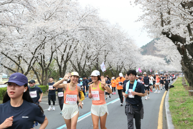 벚꽃이 흩날리는 꽃길을 달리는 마라톤 대회가 경주에서 열린다.