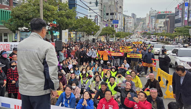 경남 거제경찰서 옥포 밖 이전 시도 즉각 중단을 촉구하는 반대대책위의 대규모 궐기대회가 열렸다.