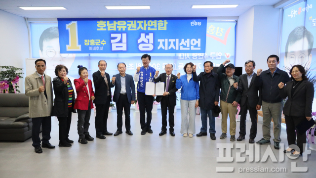 호남지역 최대 규모의 시민단체인 호남유권자연합(상임의장 이관형 정치학 박사)은1일 김성 장흥군수 예비후보 선거사무소에서 공식 지지선언문을 발표하고 "김성 후보의 당선을 위해 모든 지원을 아끼지 않겠다"고 다짐했다.