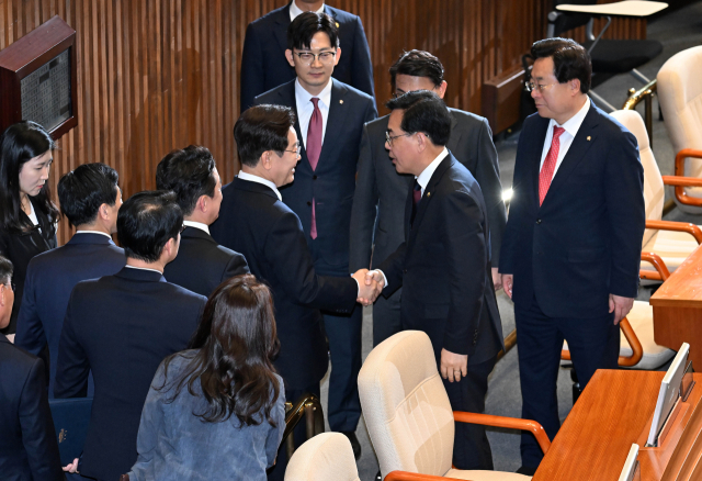 국민의힘은 이날 이 대통령 시정연설 때도 본회의장 자리를 지켰다. 한때 보이콧 가능성이 거론됐으나 "가능한 대통령 방문에 대해 예우해 주는 방식"을 취한다며 참석했다. 이 대통령의 연설이 이어지는 동안 박수갈채를 쏟아낸 여당 의원들과 달리 국민의힘 의원들은 박수를 치지 않았다.