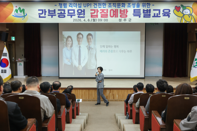 경북 성주군이 6일 군청 대강당에서 팀장급 이상 간부 공무원을 대상으로 '갑질 예방 특별교육'을 실시하며, 청렴한 공직문화 조성에 나섰다.