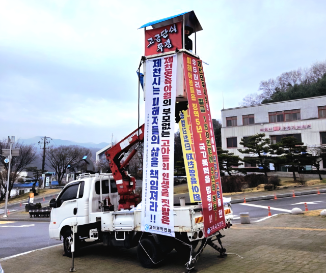 고아권익연대는 제천영육아원 아동학대 피해자들과 함께 6일 오전 충북 제천시청과 제천영육아원 앞에 트럭을 세우고 "제천영육아원 아동학대 사건 피해자들의 요구가 받아들여질 때까지 무기한 농성에 돌입한다"고 밝혔다.