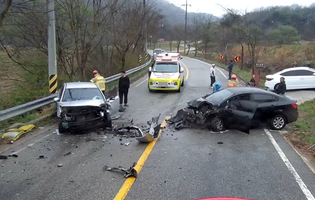 전북소방본부에 따르면 6일 오후 1시 10분께 전북 순창군 쌍치면 매죽거리 인근 도로에서 차량 2대가 충돌했다.