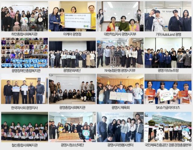 참여 기관은 광명시자원봉사센터, 광명문화재단, 광명시청소년재단, 광명시체육회, 광명종합사회복지관, 철산종합사회복지관, 하안종합사회복지관, 광명장애인종합복지관, 한국마사회 광명지사, 국민체육진흥공단 경륜경정총괄본부, 대한적십자사 광명시지부, 광명 아브뉴프랑, 기아 오토랜드 광명, 이케아 광명점, NH농협은행 광명시지부, SK 슈가글라이더즈 등 16곳이다.