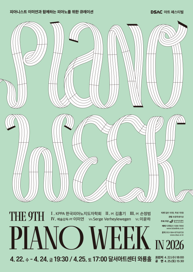 (재)달서문화재단(이사장 이태훈)달서아트센터는 오는 22일부터 25일까지 4일간 DSAC 아트 페스티벌 '제9회 피아노 위크 in 2026' 공연을 개최한다고 10일 밝혔다.