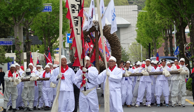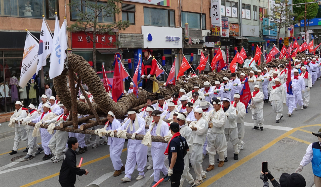 이날 기원제 현장에는 정성의 손길이 닿아 완성된 거대한 칡줄이 웅장한 자태를 드러냈다.