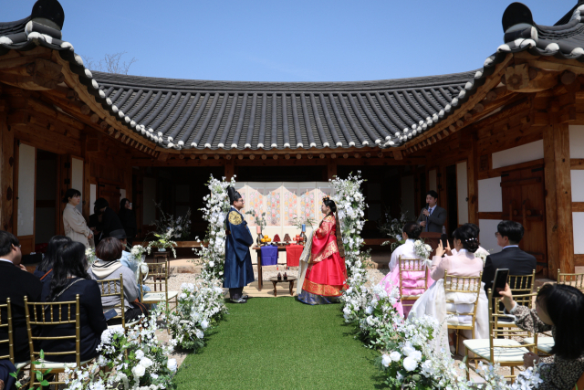 전북도는 11일 전주 전라감영(내아)에서 ‘전북, 마이웨딩’ 제1호 결혼식이 열렸다고 밝혔다. 이번 예식은 전라감영의 역사적 공간을 활용해 전통과 현대가 어우러진 연출로 진행돼 하객들의 큰 호응을 얻었다.
