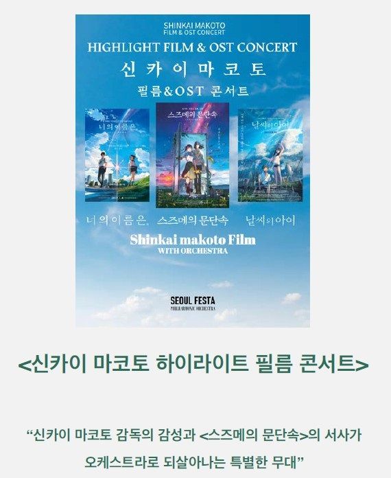서정적인 영상미로 사랑받는 ‘신카이 마코토 필름콘서트’가 스크린 밖으로 걸어 나와 웅장한 오케스트라 선율과 함께 시민들을 꿈같은 애니메이션의 세계로 안내할 예정이다.