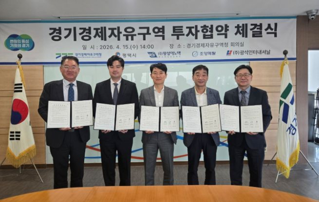 경기경제자유구역청은 평택시 및 자동차부품, 반도체, 화학 제조기업 5개사와 평택 포승(BIX)지구 산업시설용지 투자협약을 체결했다고 15일 밝혔다.