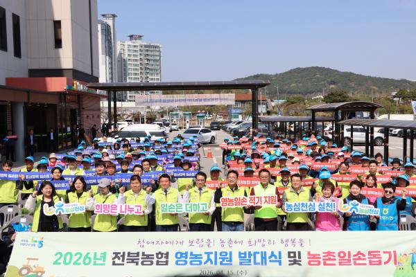 전북농협은 15일 남원농협 본점에서 '2026년 영농지원 발대식'을 열고 남원 지역 농가에서 일손돕기 활동을 펼쳤다.