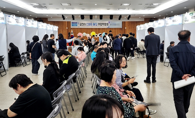 경북 김천시는 지난 15일 근로자종합복지관 3층 대강당에서 구직자들 높은 관심 속에 ‘김천시 일자리 스마트매칭 취업박람회’를 성황리 개최했다.