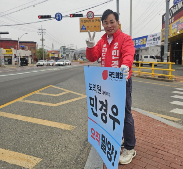 민경우 예비후보는 당내 경선에서 조인종 전 도의원과 이재율 당협 청년위원장을 제치고 최종 후보로 선정됐다. 선거구는 삼랑진읍·하남읍·상남면·초동면·무안면·청도면·가곡동 일원이다.
