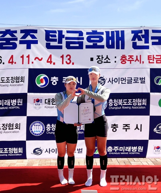 17일 군에 따르면 지난 11일부터 13일까지 충북 충주 탄금호 일원에서 열린 '제15회 충주 탄금호배 전국조정대회'에서 여자부 경량 더블스컬 부문에 출전한 김미수, 유지현 선수가 준우승을 차지했다.