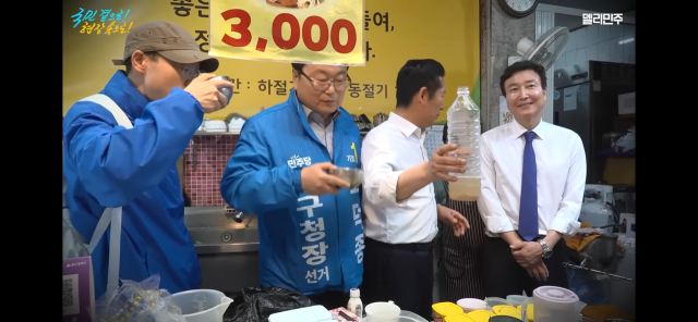 전태진 변호사도 전면에 세웠다. 정 대표는 시장 과일가게에서 키위를 들고 "울산이 키운 전태진 변호사"라고 말하며 전 변호사를 소개했다. 하루 전 민주당이 영입인재 1호로 전 변호사를 공개한 데 이어 울산 현장에서 다시 존재감을 부각한 것이다.