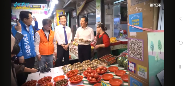 정 대표는 신정시장에서 시민들과 만난 뒤 울산이 민주당에 어려운 지역이라고들 하지만 "오늘 와서 보니까 그렇지 않다"고 말했다. 이어 한 상인이 "지금은 빨간 옷을 입고 있는데 마음은 파랗다"고 했다는 말을 전하며 울산 민심의 변화를 강조했다.