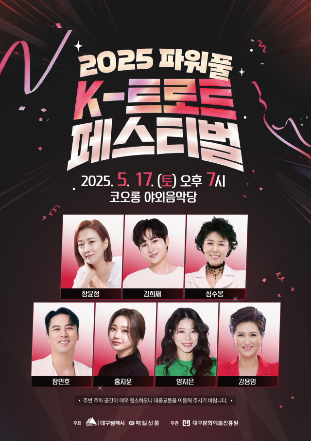 대구광역시는 오는 25일 오후 6시, 코오롱 야외음악당에서 ‘2026 파워풀 K-트로트 페스티벌’을 개최한다.