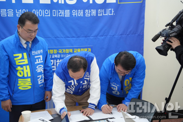 초대 전남광주통합특별시 교육감 선거에 나선 고두갑·김해룡·이정선 예비후보가 21일 후보 단일화에 전격 합의하면서 선거 구도가 크게 요동치고 있다.
