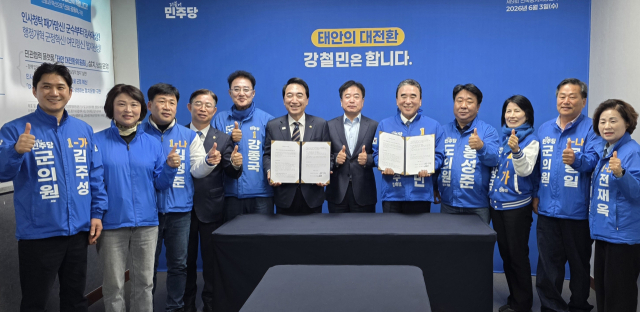 박수현 더불어민주당 충남도지사 후보가 강철민 태안군수 후보와 정책연대를 맺고 ‘원팀’으로 6·3 지방선거 승리를 다짐했다.