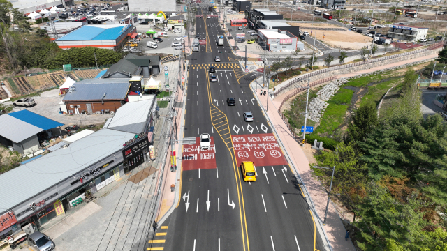 이에 시는 총사업비 183억 원을 투입해 원호리·문성리·송림리를 잇는 2.56km 구간 도로 확장으로, 기존 보도 일부 조정해 차로 확보, 폭이 부족한 구간에는 인노천 사면을 활용한 데크 보도를 설치해 추가 차로를 확보했으며, 구간별 유턴 공간도 새로 조성해 교통 흐름 개선에 힘을 실었다.