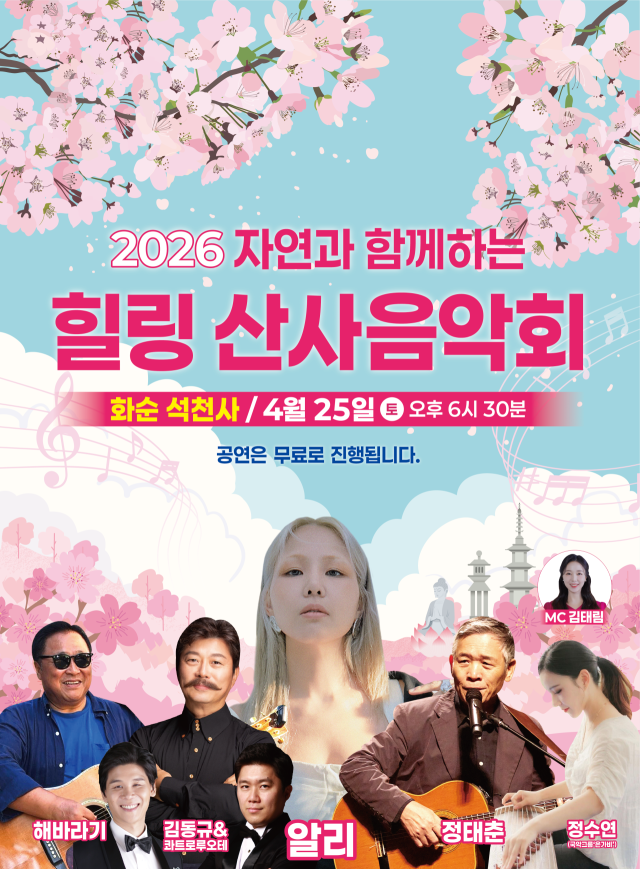 21일 화순군사암연합회에 따르면 오는 25일 오후 6시 30분 열리는 이번 음악회는 고요한 산사의 품속에서 자연과 선율을 함께 즐기며 일상의 여유와 휴식을 찾을 수 있는 기회를 제공하기 위해 마련됐다.