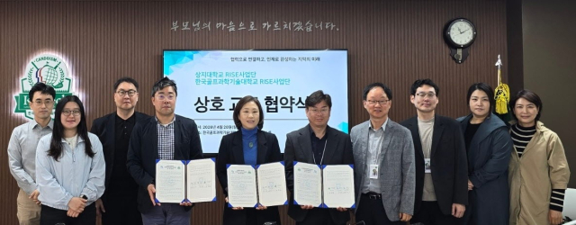 협약식에는 상지대학교 김소형 RISE사업단장과 이혁제 벤처창업본부장을 비롯한 교내 관계자와 한국골프과학기술대학교 RISE사업단 관계자 등 양 기관 주요 인사가 참석했다.