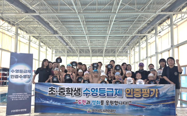 23일 익산도시공단에 따르면 전날 센터 내 수영장에서 초·중학생 회원 16명이 참여한 가운데 대한수영연맹 수영등급제 평가를 성황리에 마쳤다.