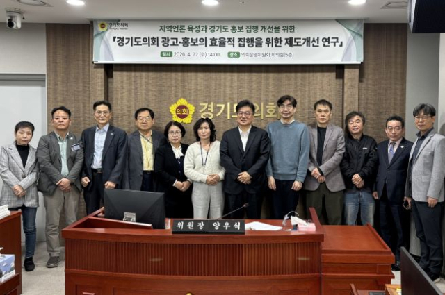 의회운영연구회(위원장 양우식)는 지난 22일 의회운영위원회 회의실에서 '경기도의회 광고·홍보의 효율적 집행을 위한 제도개선 연구' 용역 중간보고회를 개최했다고 23일 밝혔다.