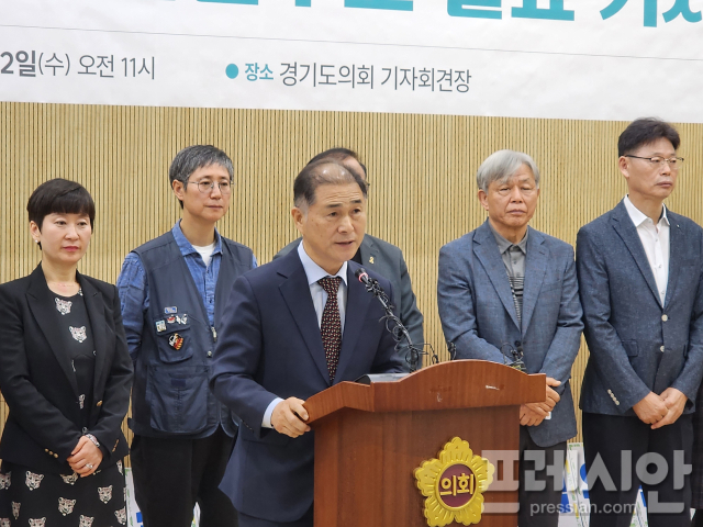 ▲23일 경기교육혁신연대에 참여한 운영위원들이 경기도의회에서 기자회견을 열고, 진보진영 경기도교육감 후보단일화 과정에서의 ‘선거인단 대리 등록 및 가입비 대리 납부 의혹’에 대한 진상 규명을 촉구하고 있다. ⓒ프레시안(전승표)