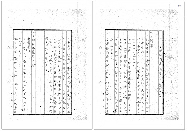문부성의 외국이지만 거의 독립에 가까운 지위를 가지고 있다. 위원장은 다카하시 세이치로(高橋誠一郞), 위원은 야시로 유키오(矢代幸雄), 호소카와 모리타츠 (細川護立), 이치마다 히사토(一万田尙登), 우치다 요시카즈(內田祥三) 네 명이며, 사무국장은 모리타 다카시(森田孝)이다. 문화재보호위원회는 전문위원에 학계·미술계의 유력자를 다수 가지고 있으며, 전문위원의 발언권은 극히 강하다. 고서적·미술 골동품을 불문하고, 본건 관계 문화재의 처리에 관해서는 이들 전문위원을 무시해서는 곤란하다고 생각된다. 또한 도쿄 및 나라(奈良)의 국립박물관은 문화재보호위원회의 소관에 속한다.