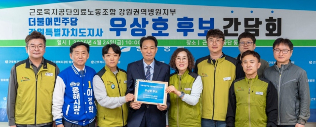 우상호 더불어민주당 강원특별자치도지사 후보가 24일 근로복지공단 동해병원에서 근로복지공단의료노동조합 강원권역병원지부(동해, 태백, 정선)와 정책 간담회를 했다.